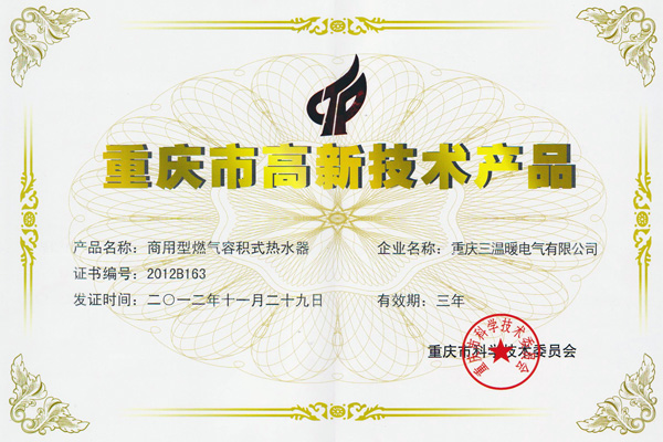 重慶三溫暖電氣有限公司創(chuàng)建于1995年,是專業(yè)從事中央熱水系統(tǒng)和廚衛(wèi)電器產品的集研發(fā)、制造、銷售為一體的現(xiàn)代化企業(yè),主營:燃氣容積式熱水器、商用熱水器的專業(yè)制造商,獲得了該行業(yè)國際標準--澳大利亞“AGA”認證并遠銷澳大利亞、新西蘭、印度、泰國、菲律賓、哥倫比亞、馬來西亞等國家和地區(qū)。